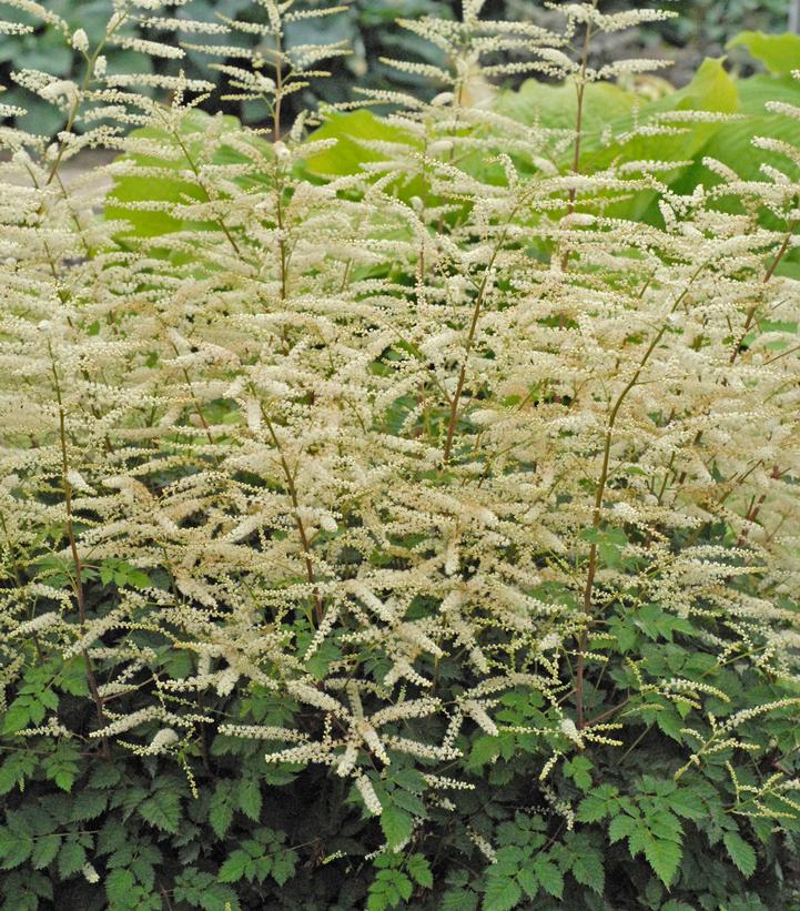 Description: More compact than the species Heat and humidity tolerant Cold hardy Airy white flower panicles on red stems in late May through June Showy and easy to care for Great in mass plantings Hybrid between A. aesthusifolius and A. dioicus